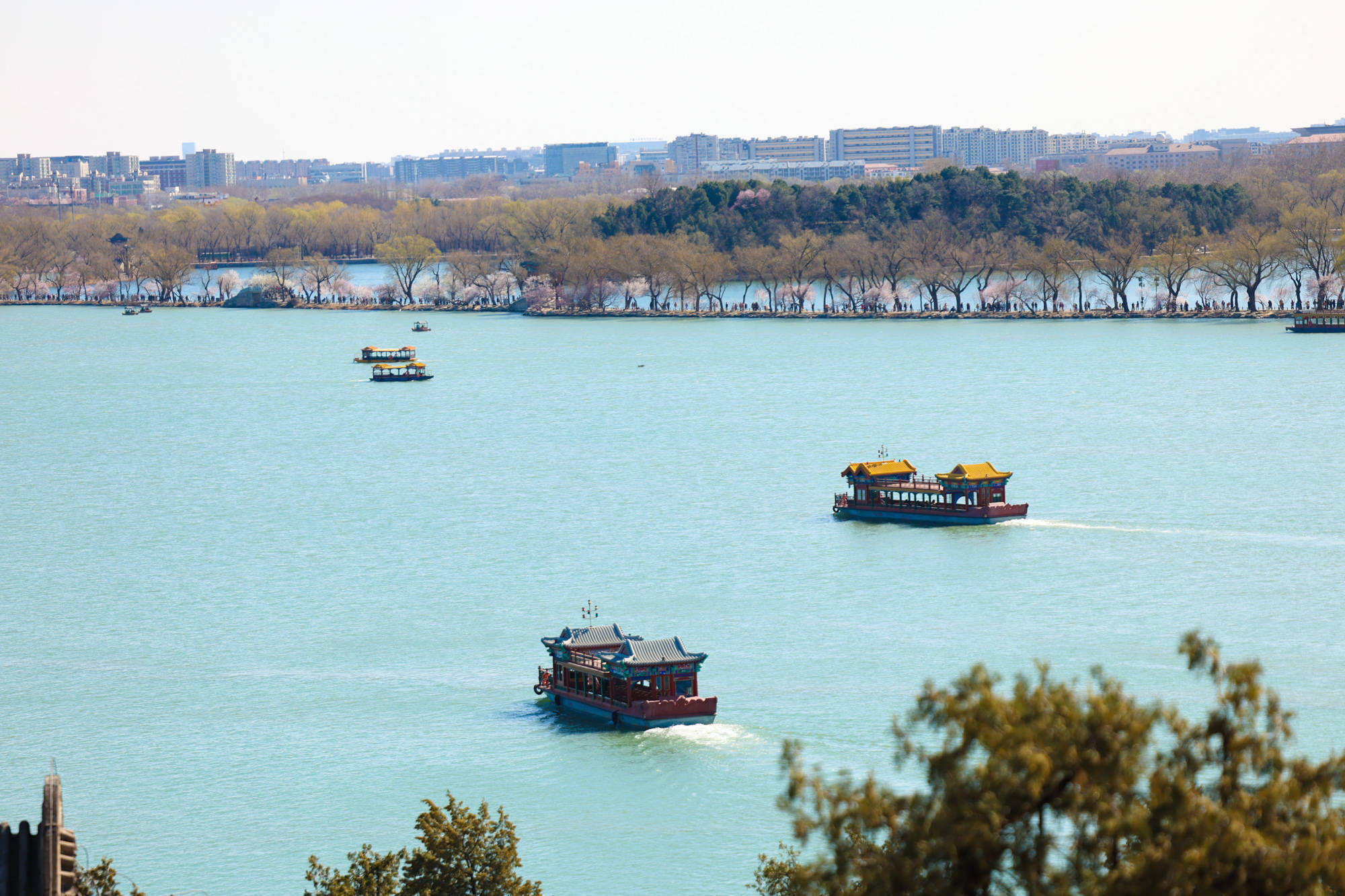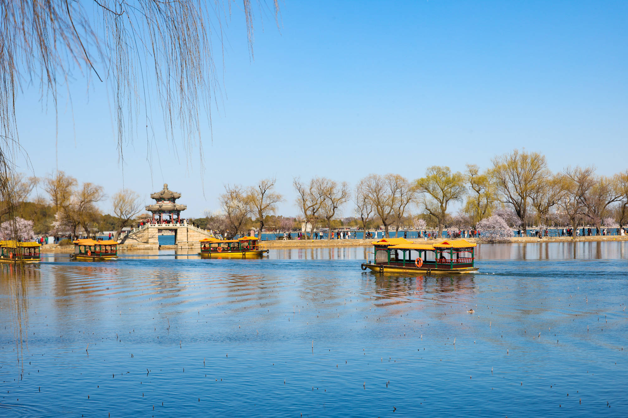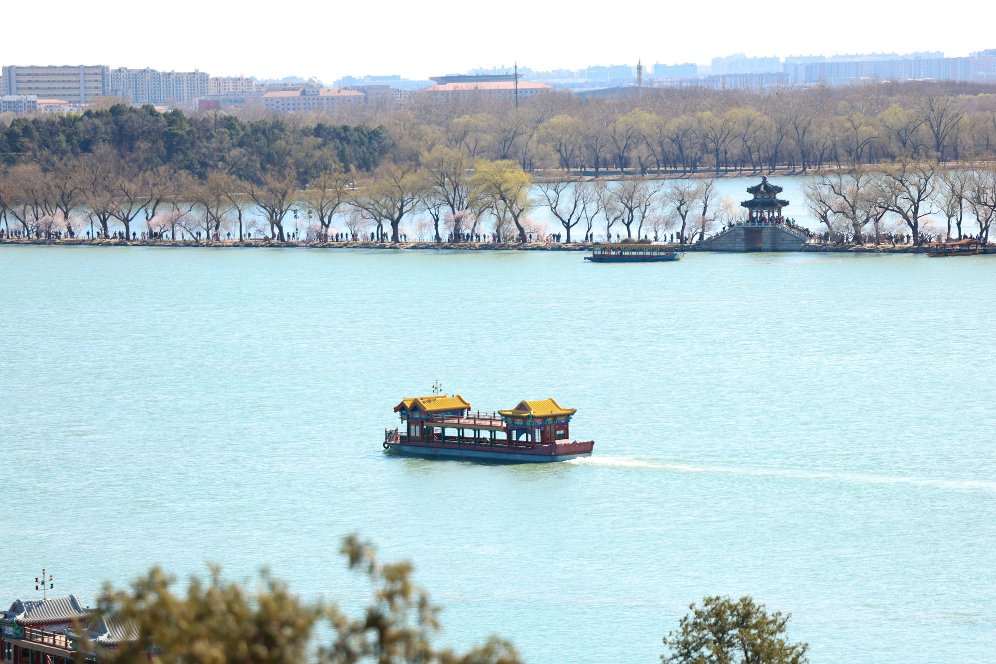 ↑2026年3月18日,游客乘船在北京颐和园游览。CICPHOTO/牛云岗 摄编辑:张雪萌