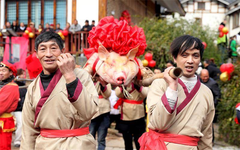 抬上刚宰好的年猪。高志农摄