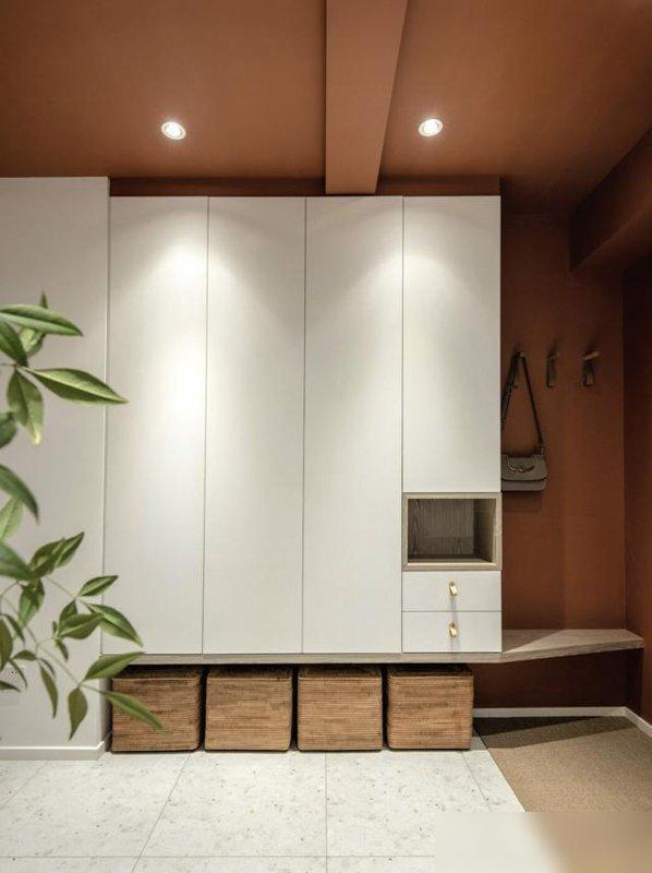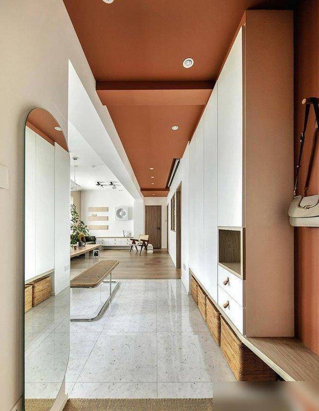 玄关斜边换鞋凳,窄走廊变开阔。