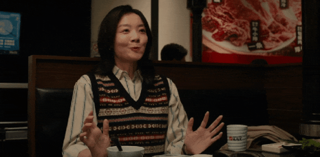 比如,当张嘉怡和同事(李雪琴饰)聚餐的时候,对方动作豪迈,大口大口吃的特别香,吃完还竖起一根大拇指。