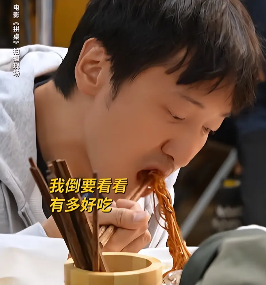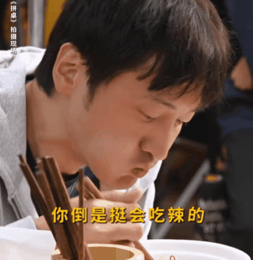 最起码,人家有认真的在吃,比如在吃油泼辣子拌面的时候,他是真的把面条往嘴里塞,大口大口吃的毫不含糊。