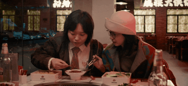 并且,在《拼桌》中,基本上男女主之间比较重大的感情转变,都是在饭桌上发生的,但搭配上江疏影的吃戏,瞬间就没什么说服力了。