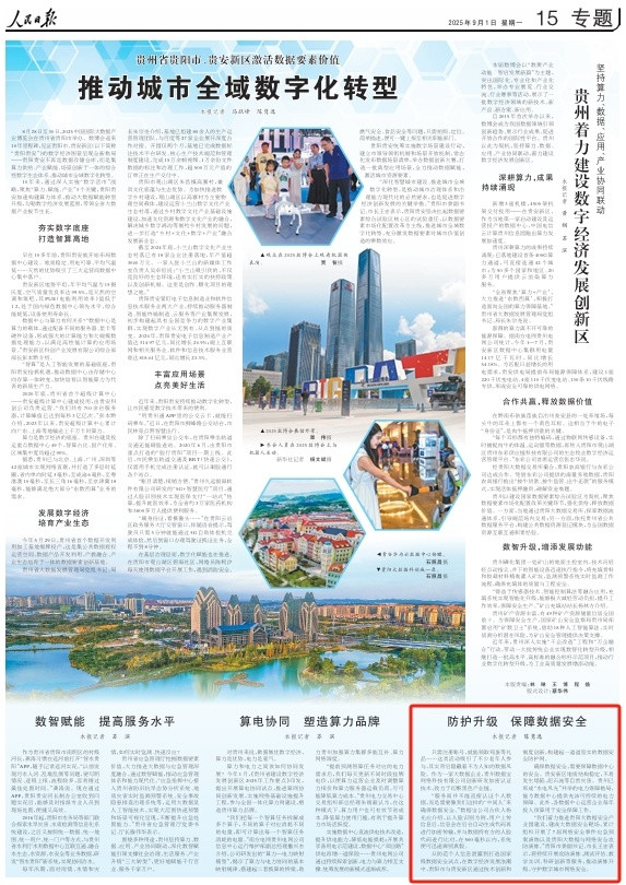 从防范个人信息泄露到打造国家级数据安全试点,在数字经济发展浪潮中,贵阳市与贵安新区通过技术创新和制度创新,构建起一道道坚实的数据安全防护网。